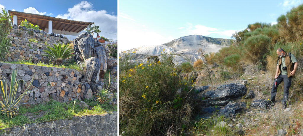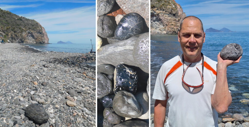 2. kép ▪ Lipari szigetének északkeleti oldalán, a szálban álló obszidián kőzetfalakat rejtő völgyek (Gabellotto, Canneto Dentro) előterében lévő tengerpartok a neolitikumban és a bronzkorban feltehetően fontos gyűjtőhelyek voltak. A Monte Pilato keleti lábánál, a Spiaggia delle Papesce területén napjainkban sem ritkák a gyermekfej nagyságú, több kilogrammos obszidián tömbök.